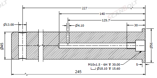 Bolzen Ø45x245L mit Schmierung & Arretierloch